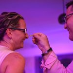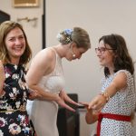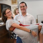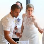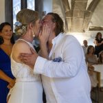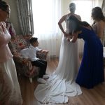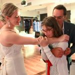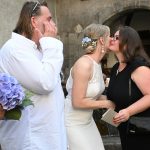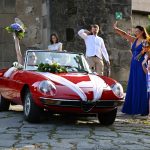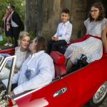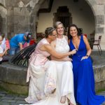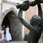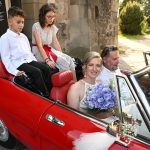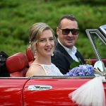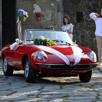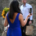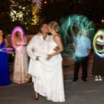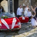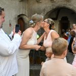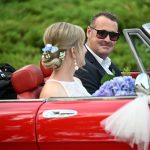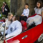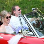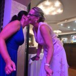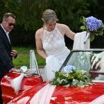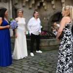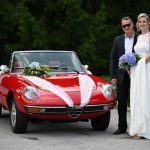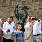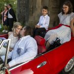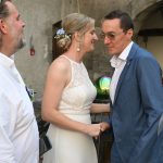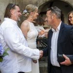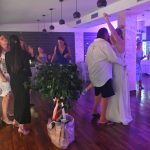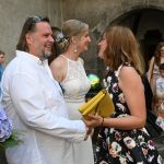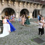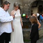 Fotografovanie sa vo fotokútiku s novomanželmi.