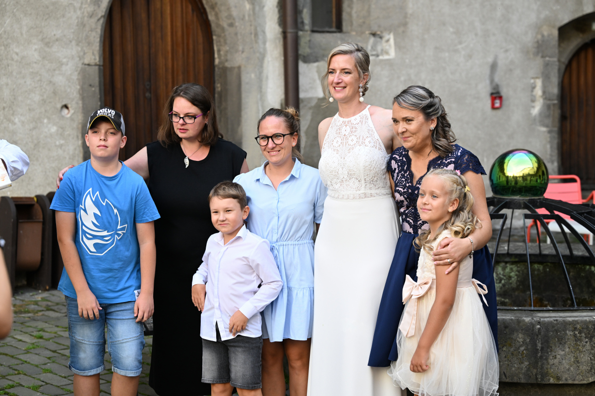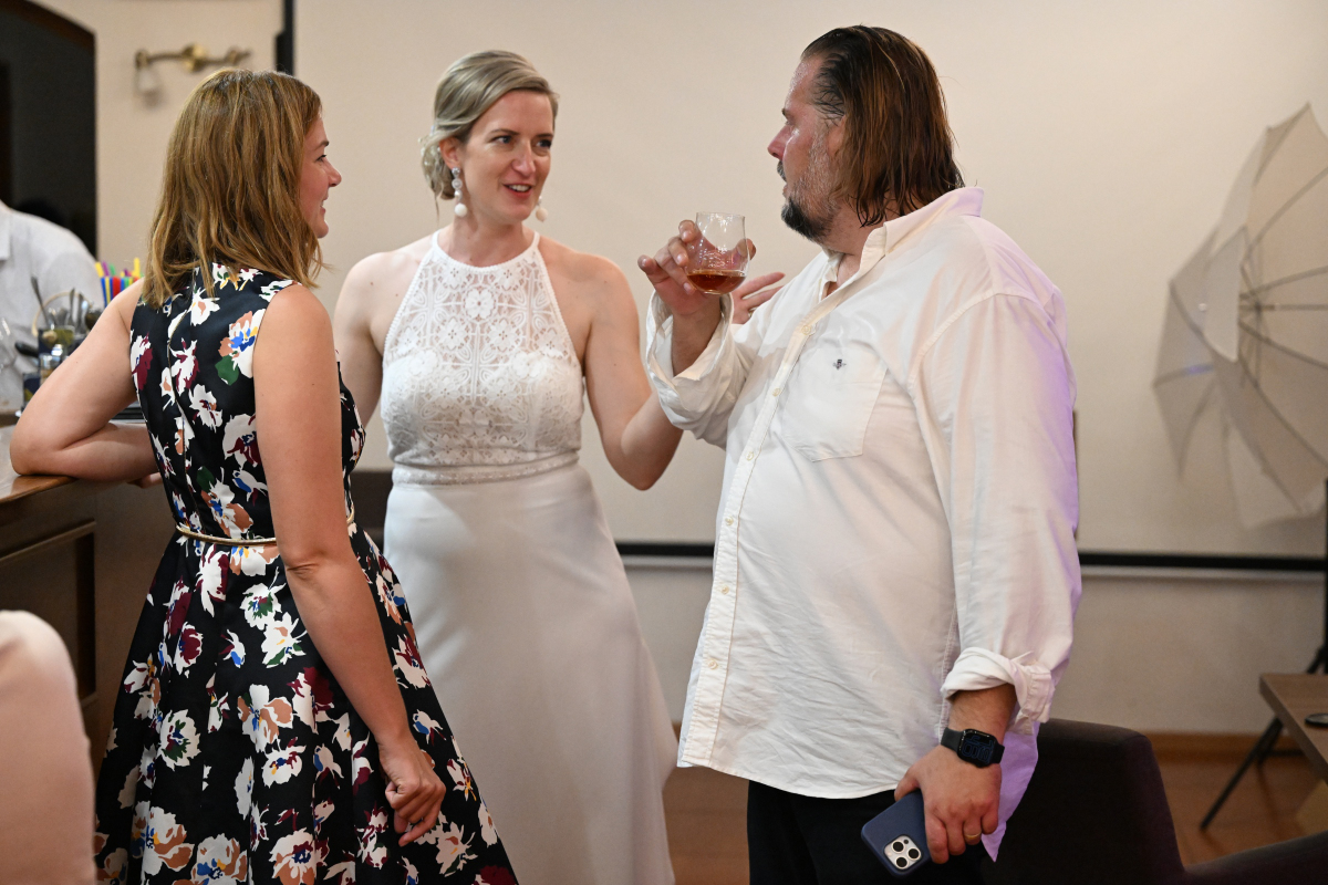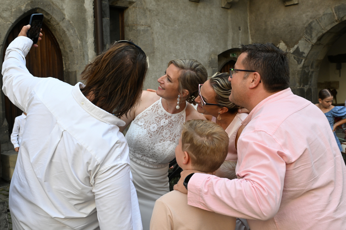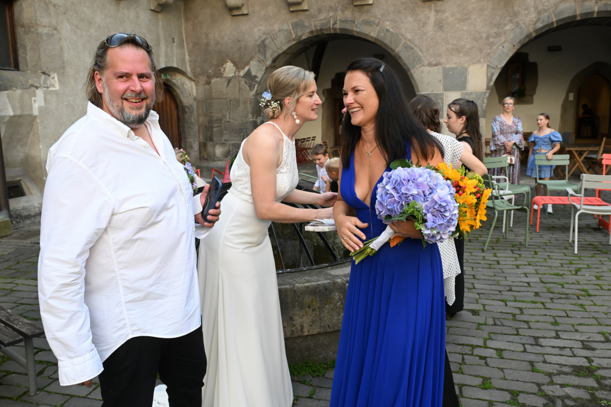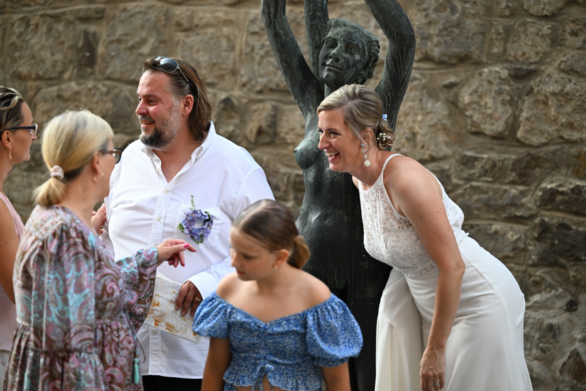 Fotografovanie sa vo fotokútiku s novomanželmi.
