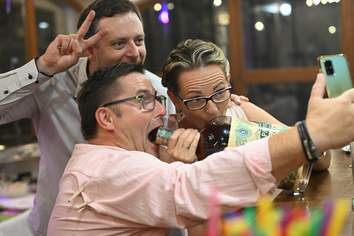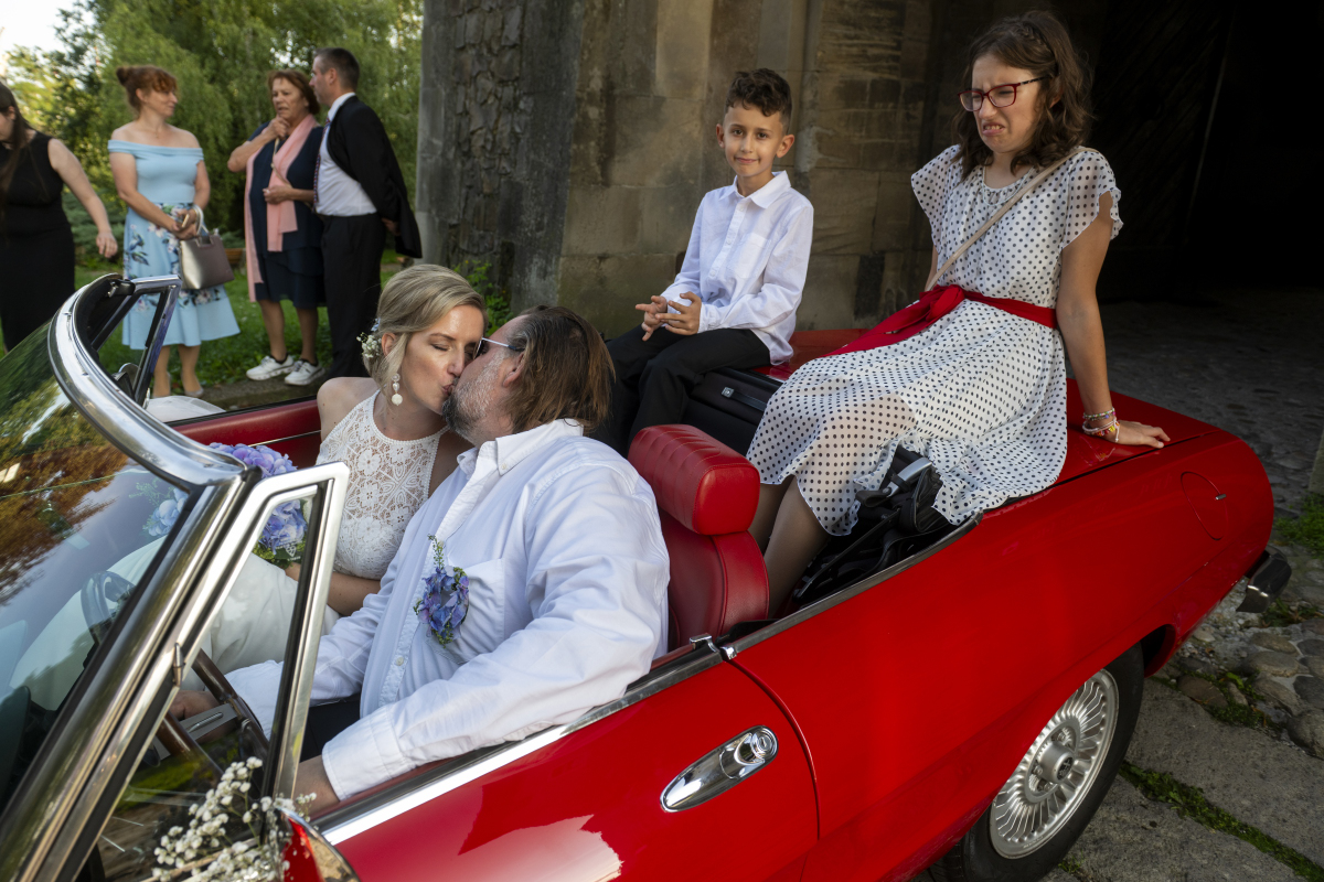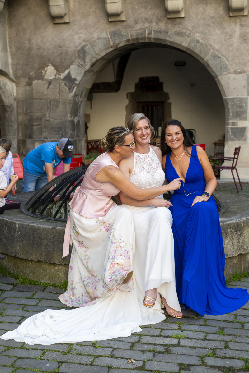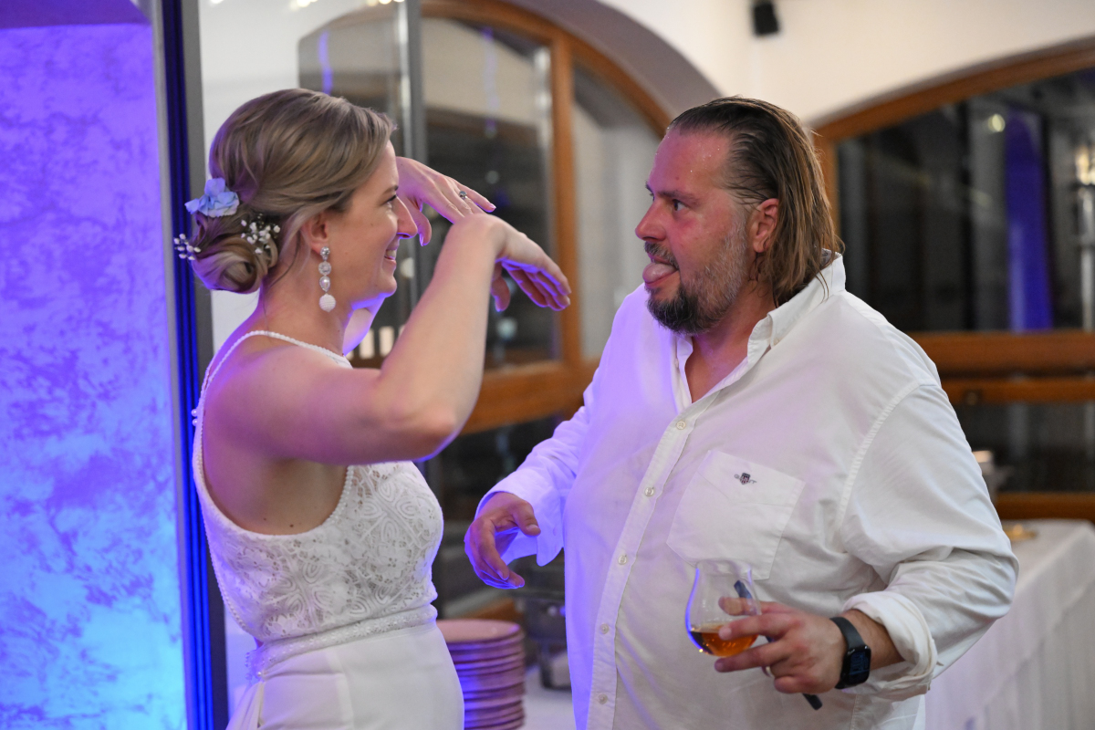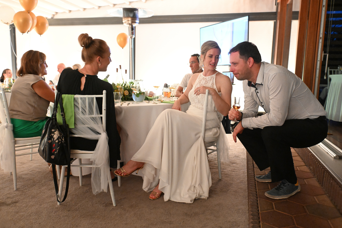 Fotografovanie sa vo fotokútiku s novomanželmi.